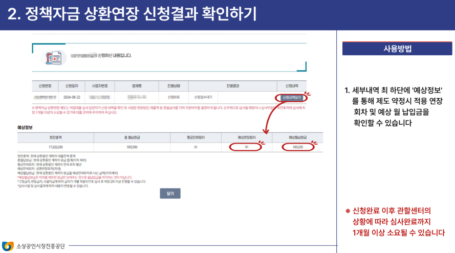 - 상환 연장 승인: 심사를 통과하면 상환 연장이 승인되며, 소상공인은 새로운 상환 일정에 따라 자금을 상환할 수 있게 됩니다.