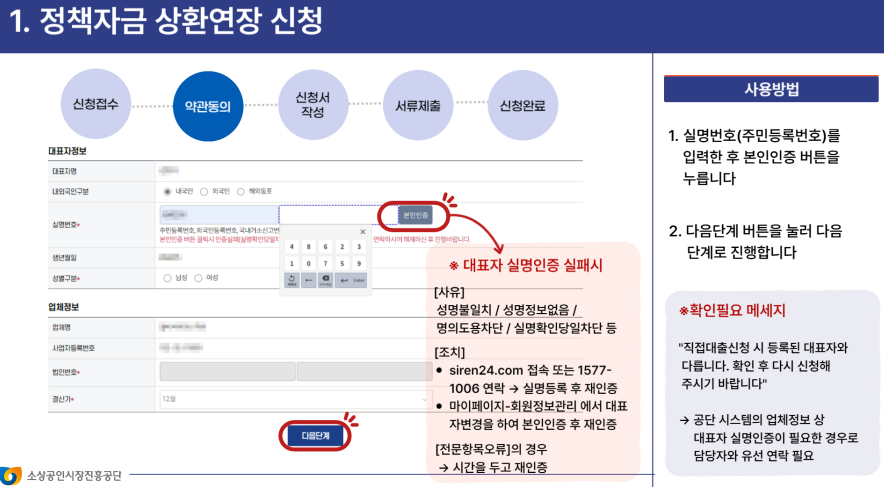소상공인들이 정책자금 상환 연장을 신청하려면 몇 가지 절차를 따라야 합니다. 일반적으로 다음과 같은 단계를 거칩니다.