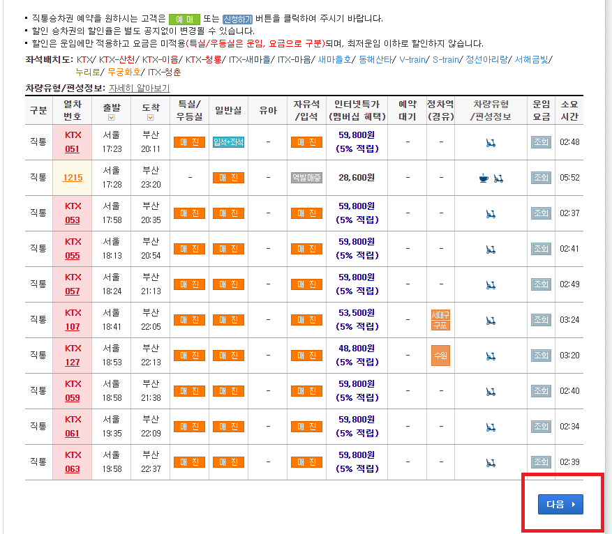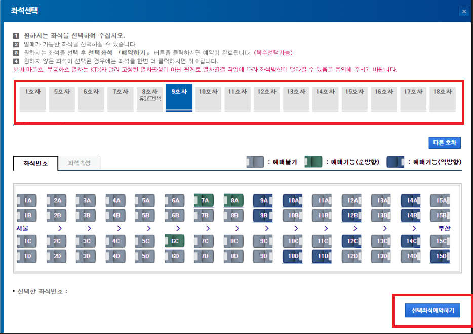 참고로 예매는 일반실과 특실만 가능하며 입석은 현장예매입니다.